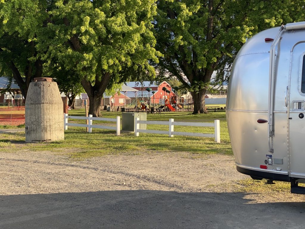There was a large playground just outside our camper, a skate park, a train track far enough away to enjoy it without it blasting your ears off and a beautiful old working feed and grain mill bordering another side of the parking lot.  We happened to arrive in that magical evening glow the sun gives to everything just before it sets which made it feel that much more lovely.