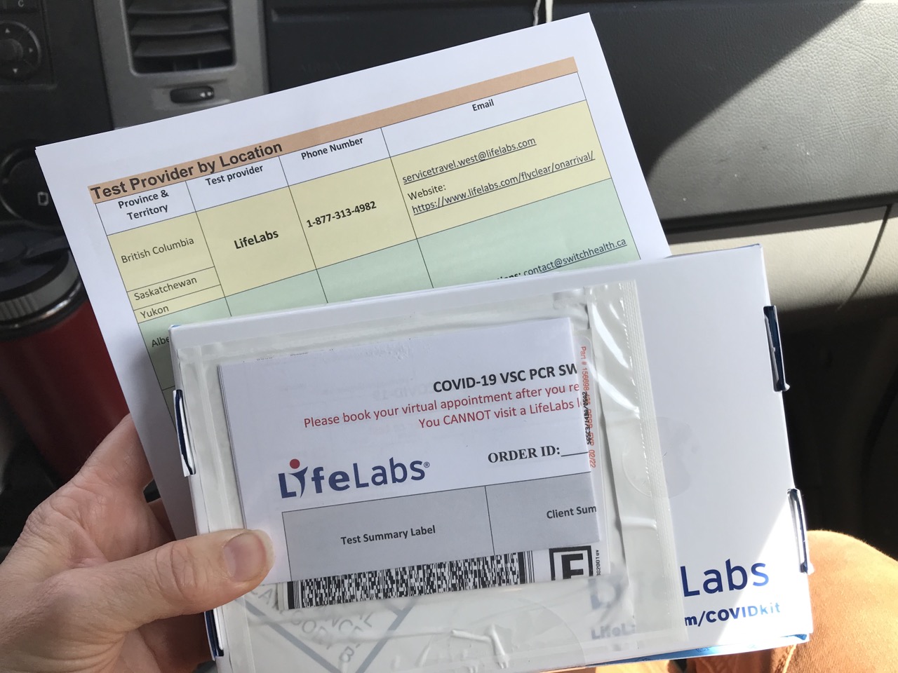 Dear me! So, I ended up calling the clinic on the phone and telling them what happened. They had me rebook the appointment for later that day. That time it worked. The guy from the clinic video called me and did his best to walk me through the test through choppy service and dropped calls. We then had to keep the test in a refrigerator and find a designated drop off box to be post marked by the same day; yet another run around. In all, that test sucked up about 3 1/2 hours of our time and absolute alteration of plans for 2 days. If we were in Canada to stay a month it wouldn’t have been as big of a deal but, man!
