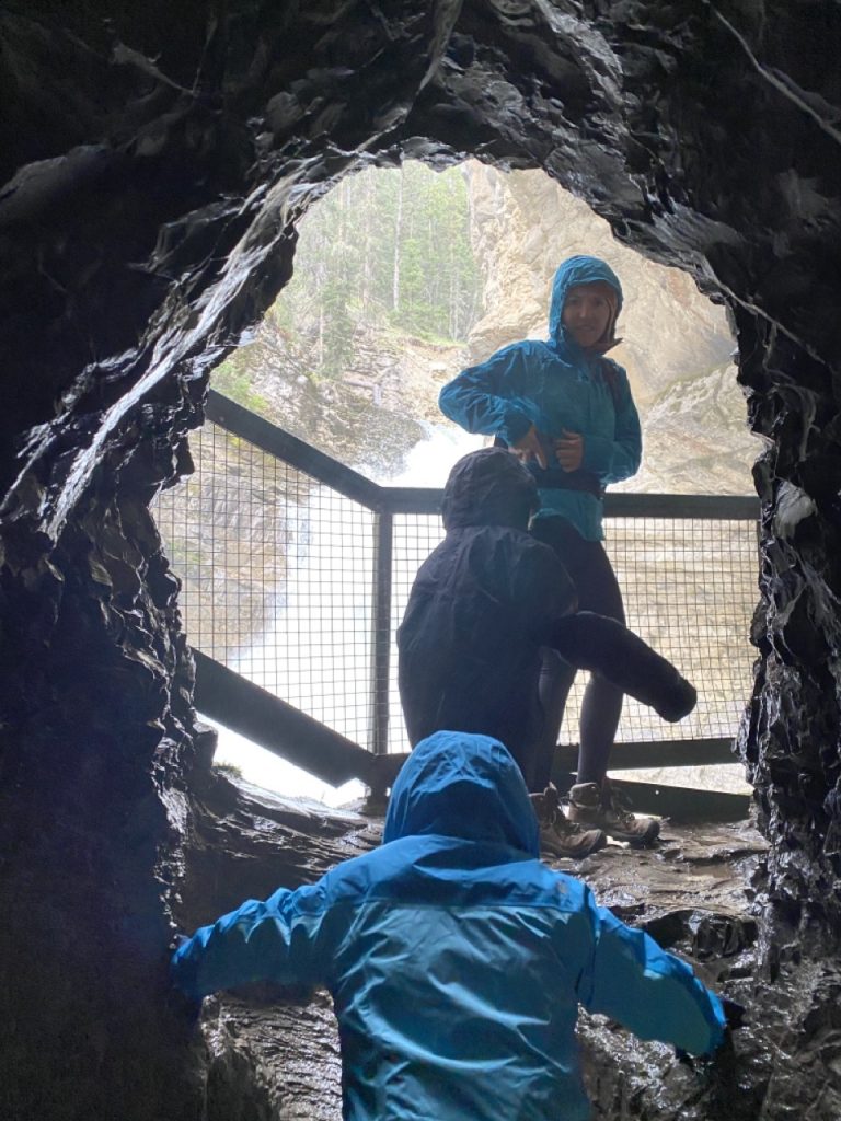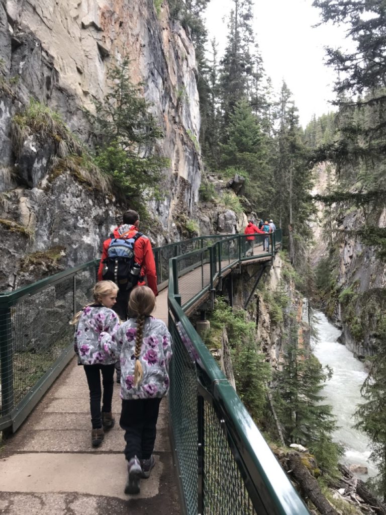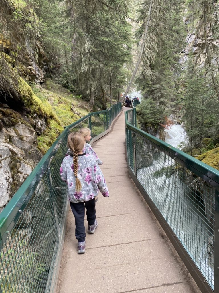 We decided to keep the girls on US Pacific Time rather than switching them to Mountain Time. This meant we were getting up a bit on the late side but getting to enjoy later evenings. Despite the “late” starts in the morning we were luckily able to find parking and take our planned hikes. For our first full day in the park we decided to explore Johnson Canyon and Cave & Basin.