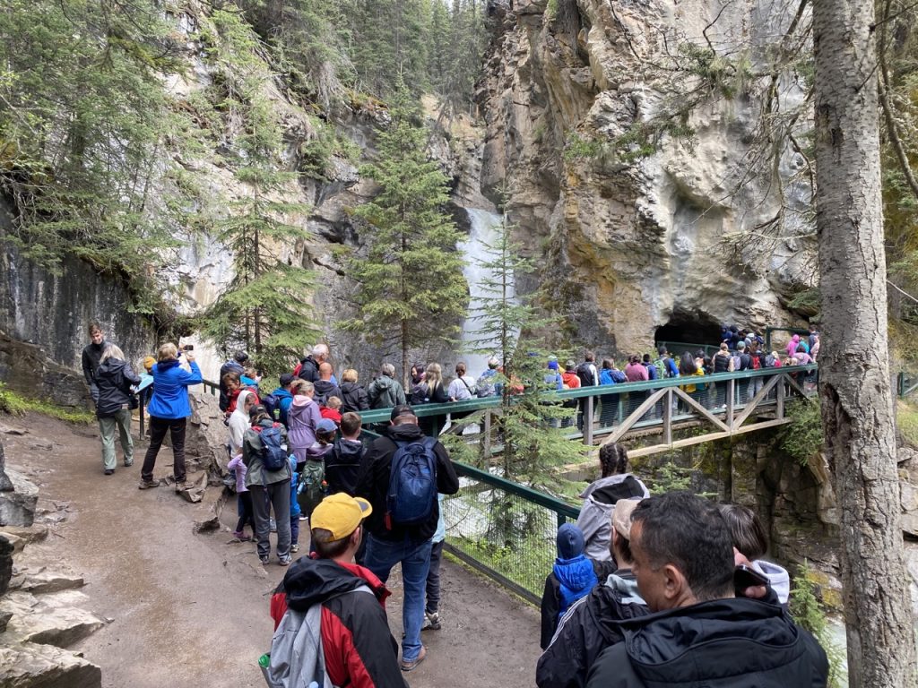 Our first hike was Johnson Canyon hike where there were a slew of waterfalls throughout the climb. The trail was really well built along a boardwalk that, in many parts, hung over the raging river below. As you can imagine it was a popular hike so the boardwalk trail was a little tricky at points to pass one another with various walking speeds. All hikers were friendly though so it worked out just fine.