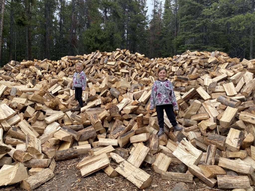 We had promised the girls a fire and since it was a chilly night it was a good night to do so. They had been making mud pies and various other very fancy mud dishes that they wanted to bake over the fire. Part of our campsite fee was a fire permit, and along with that permit came unlimited wood from a giant wood pile.