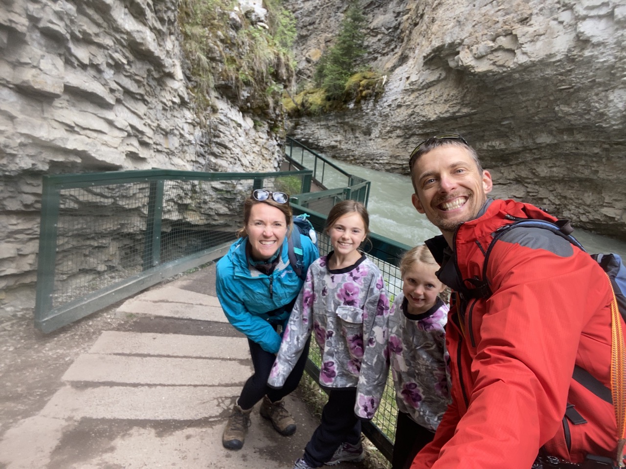 We decided to keep the girls on US Pacific Time rather than switching them to Mountain Time. This meant we were getting up a bit on the late side but getting to enjoy later evenings. Despite the “late” starts in the morning we were luckily able to find parking and take our planned hikes. For our first full day in the park we decided to explore Johnson Canyon and Cave & Basin.