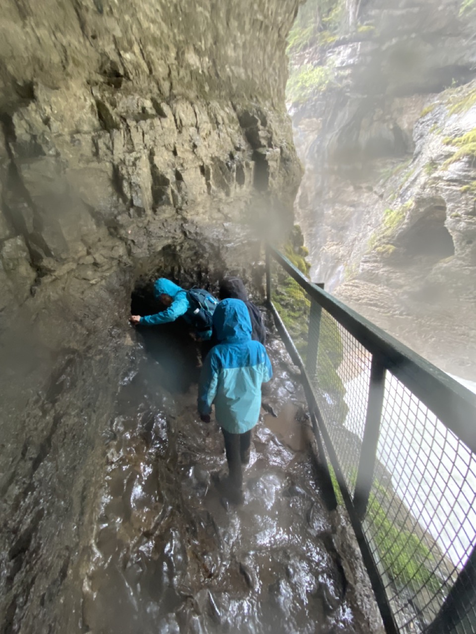Close to the lower falls there was a cave where you could go in and see what it was like to be standing right next to the massive falls. We waited in quite a long line to get our chance to experience it, but that was to be expected with so many people. I tell you what, it was a very cold, wet and neat experience. As soon as we emerged on the waterfall side of the cave we were soaked with the spray of the very powerful waterfall. It was already a pretty chilly day at mid 40’s so standing still in the line for so long and then getting pummeled by water was quite cold. It took a lot of uphill climbing to feel our extremities again. The girls were really very good natured about the whole thing.