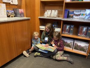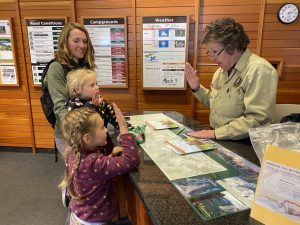 Our routine for going to a national park usually goes something like this: Go to the visitor center to pick up maps, get the girls’ Jr Ranger booklets, ask about family friendly hikes and must sees, learn about the area in the museum portion of the visitors center, get a sticker for Wobbles (our camper) door and read all the great children’s books in gift shop.  It takes the better part of an afternoon but we look forward to this.  It get’s us excited about the park and leaves us wanting to see and do more!