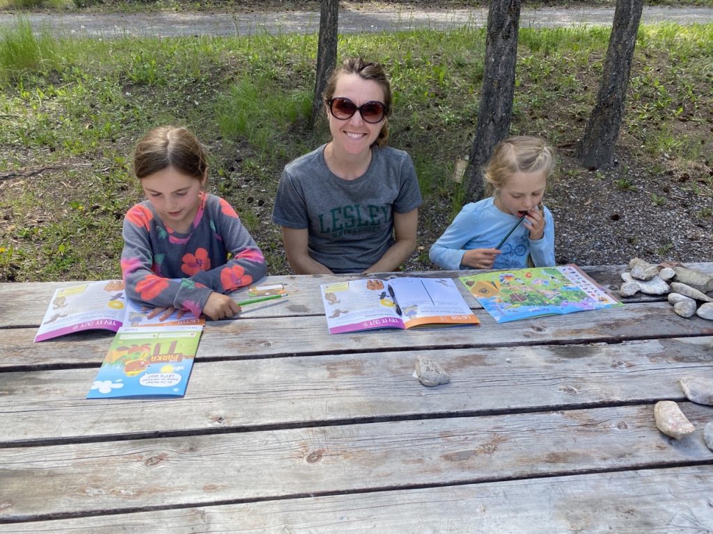 Things were a bit different here in Canada.  They are much more relaxed about their parks.  Upon arrival at Redstreak Campground within the park they gave us an Xplorers book for the girls, which is the Jr Ranger equivalent in Canada.  The books were fun for the girls to do but didn’t really teach them anything. We’re used to it being really like a mini homeschooling lesson on the park’s geography, history, local wildlife and plant life, prominent features and such.  These booklets were word searches, spot the differences in pictures and things along those lines.  I was a bit disappointed because there are always more things to learn and the park missed a good opportunity to teach new explorers in a fun way.