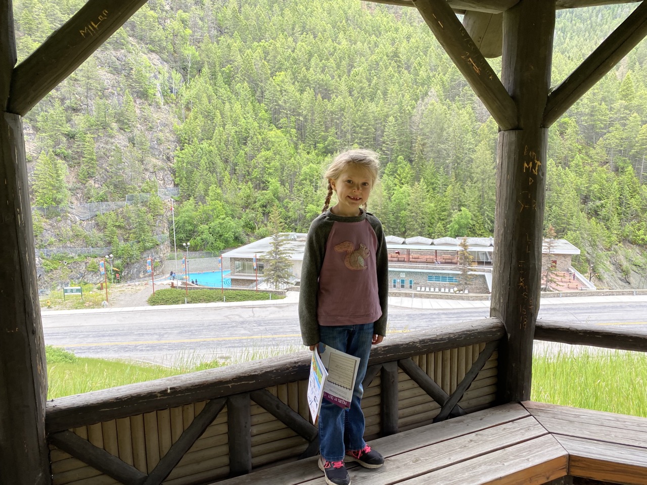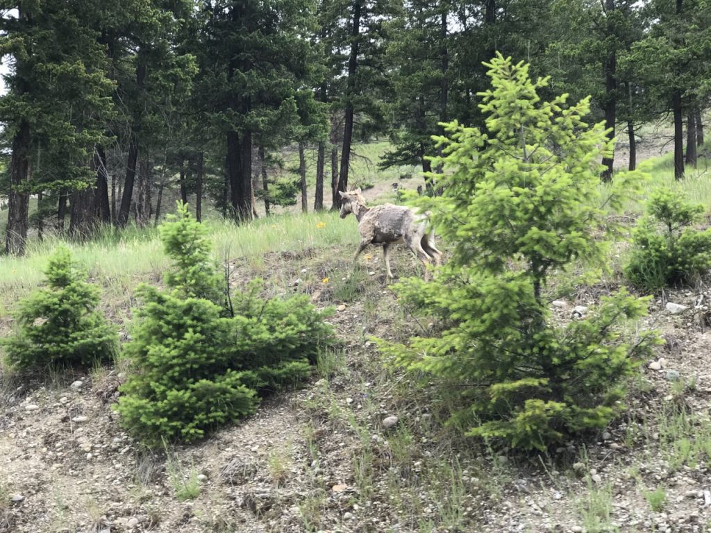 Our stay at Kootenay was short but we were able to fit in some special things on our second and last day.  Justin and I each took one kiddo to do separate but special things.  My youngests’ skin has a hard time in chlorine for more than a couple consecutive days so she and Justin did some exploring on their own while my oldest and I went to the Radium Hot Springs.  While Justin and my youngest were exploring they saw big horn sheep scat, fur stuck to trees, and then a big horn sheep ewe up close and personal.  They had their backs turned while our little one was working on her Xplorers book on the ground and turned to see the big horn sheep a mere 20 feet from them!  What a special moment.  The sheep are all shedding their winter coat so they are looking a little disheveled but really amazing creatures.