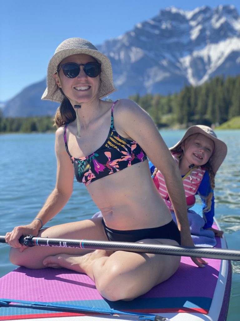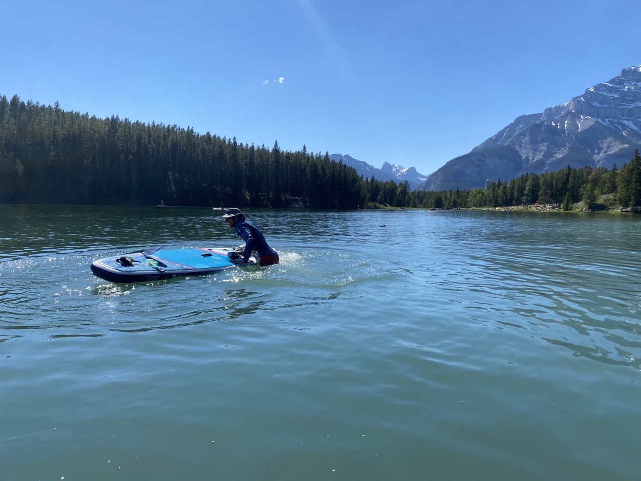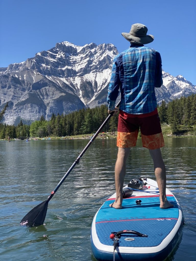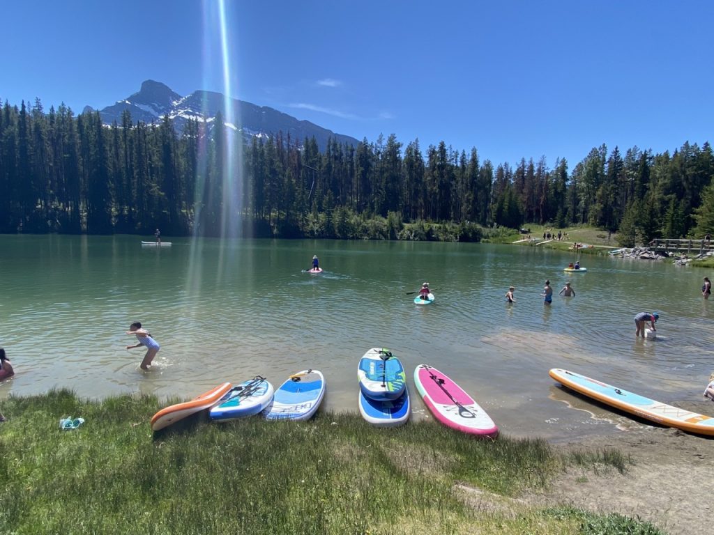 This would be the hottest day of our Banff stay with weather in the 70’s and full sun. We thought it would be a perfect day to get out the paddle boards and put them on the water! We chose Johnson Lake as it’s the warmest lake at Banff and as such is the only lake that is comfortable for swimming.