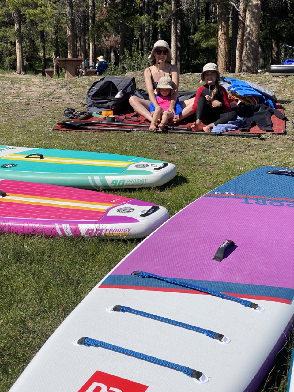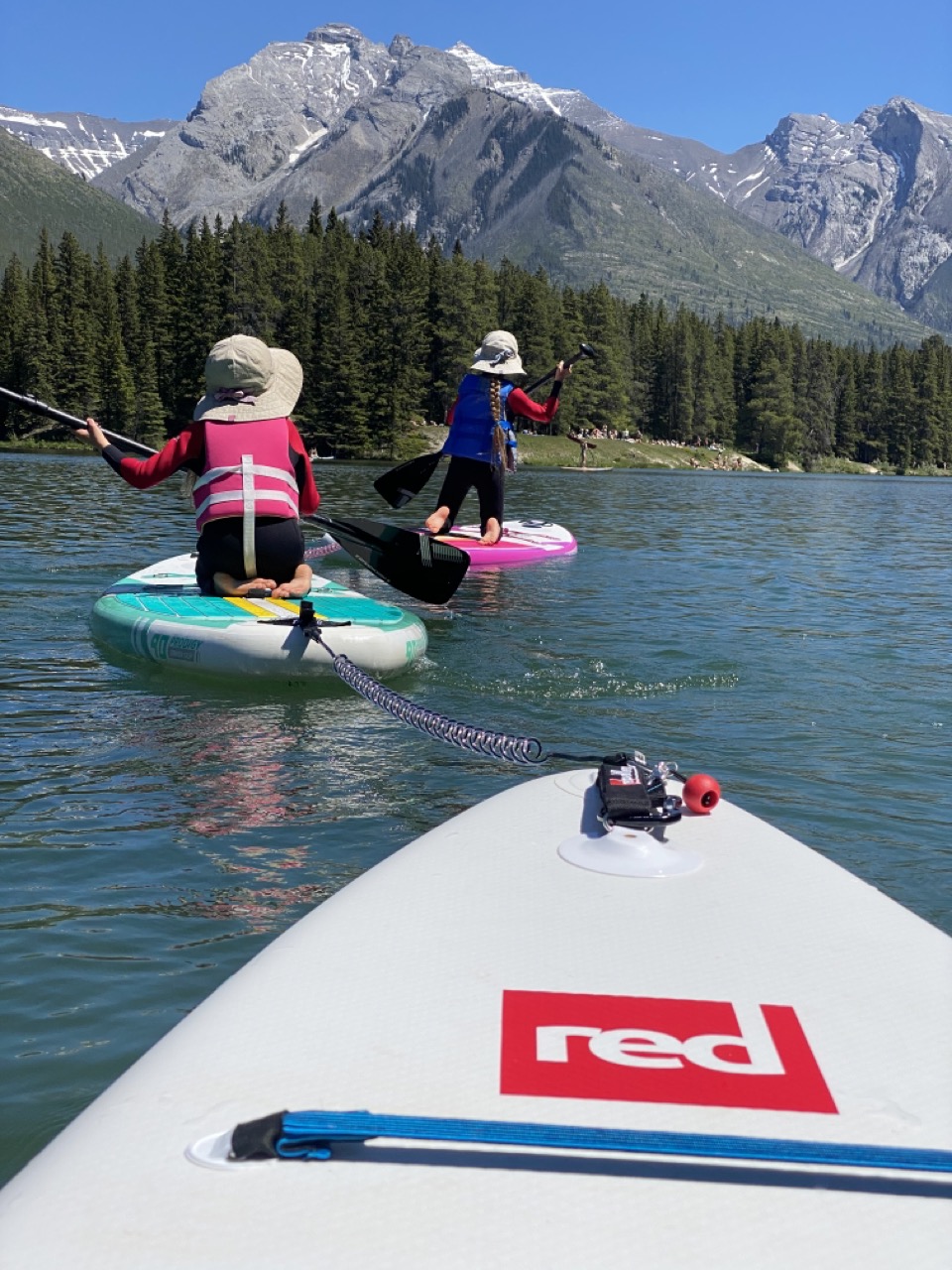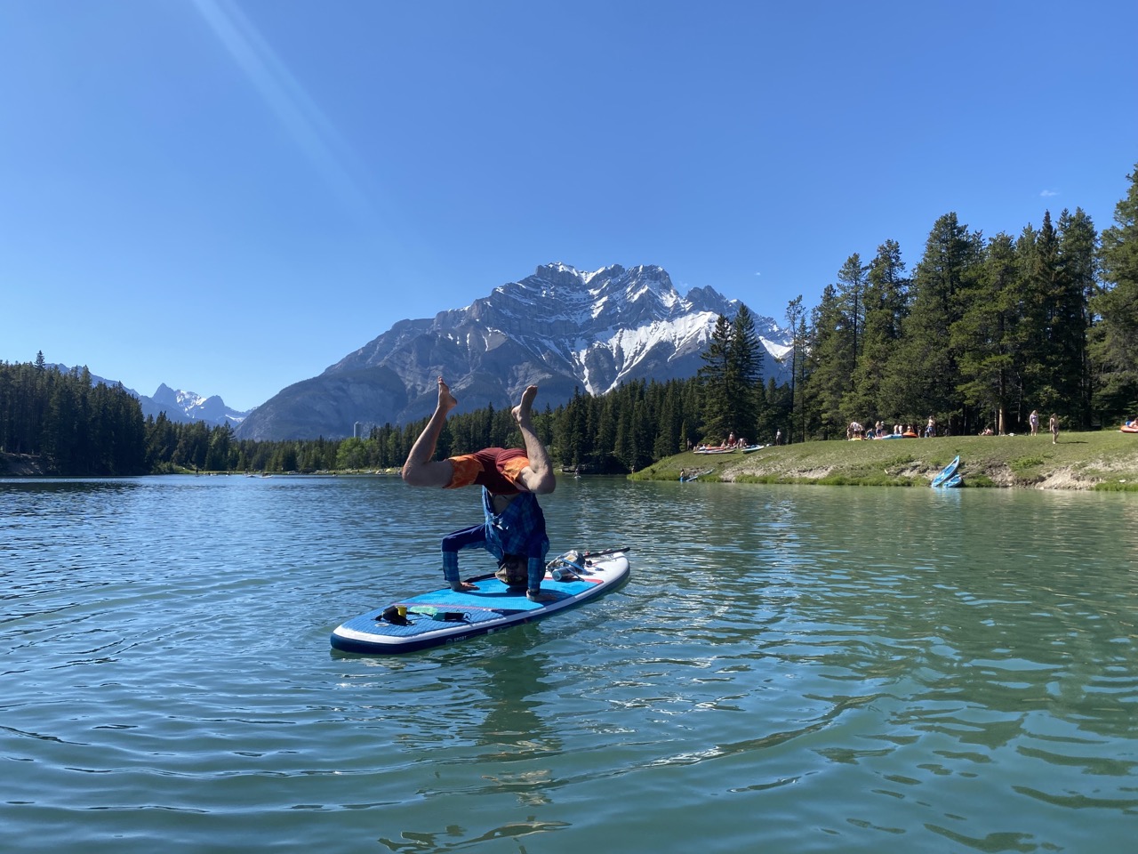This would be the hottest day of our Banff stay with weather in the 70’s and full sun. We thought it would be a perfect day to get out the paddle boards and put them on the water! We chose Johnson Lake as it’s the warmest lake at Banff and as such is the only lake that is comfortable for swimming.