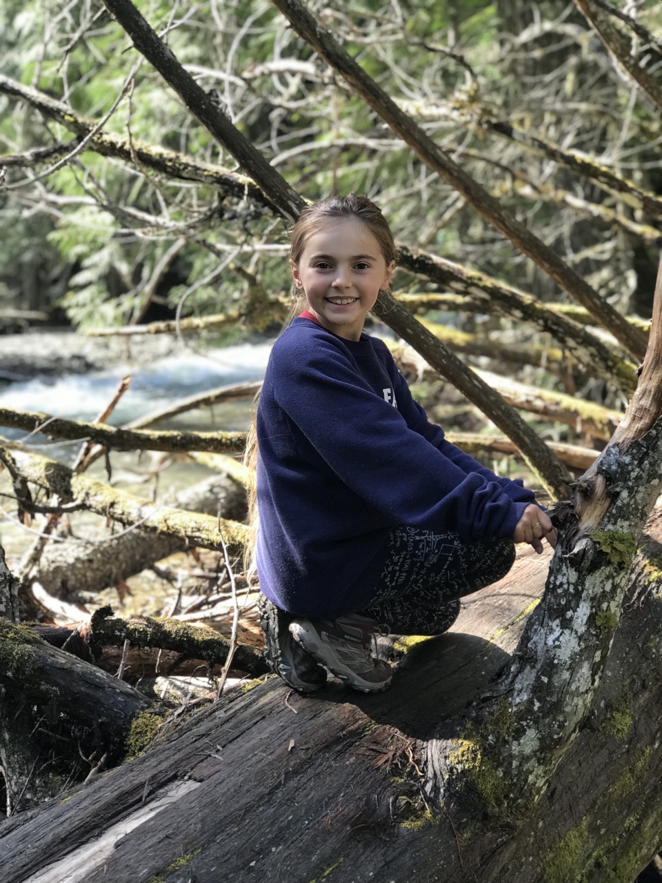 Before long the trail had opened up from the dense forest to reveal beautiful views of the surrounding mountains.  The kids found some great downed trees to play on while the adults soaked in the views and snapped some photos.