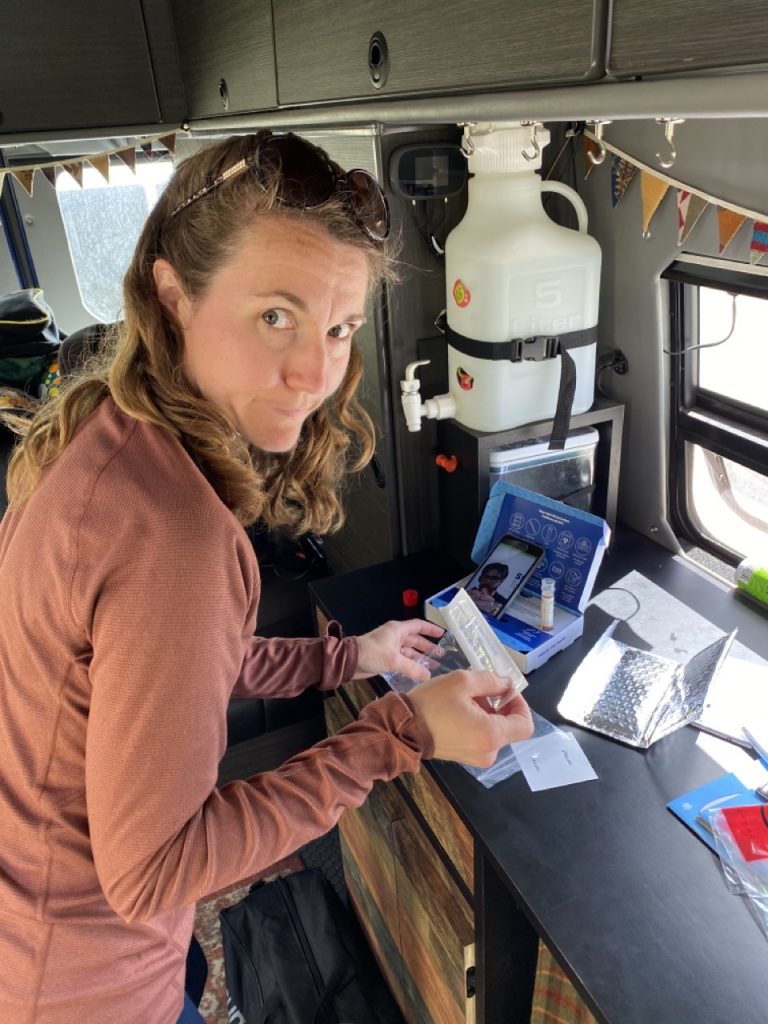 We barely had any cell phone service where we were and our Verizon cell plan had limited data available while roaming in Canada. I attempted many times to create an account, which is required to make an appointment, with the designated online clinic with continued failed attempts. It was a combination of crummy cell service and the Canadian online clinic system not accepting our US address. We ended up calling the helpline and the woman on the phone scheduled me for a virtual visit for the next afternoon. The woman on the phone said I would be getting a call at 1:55pm from a representative to walk me through taking my test. This of course meant that we had to be sure we were back at the van with the test kit and somewhere within cell range. Tricky to plan out when we were only going to be in Canada for a handful of days anyway.